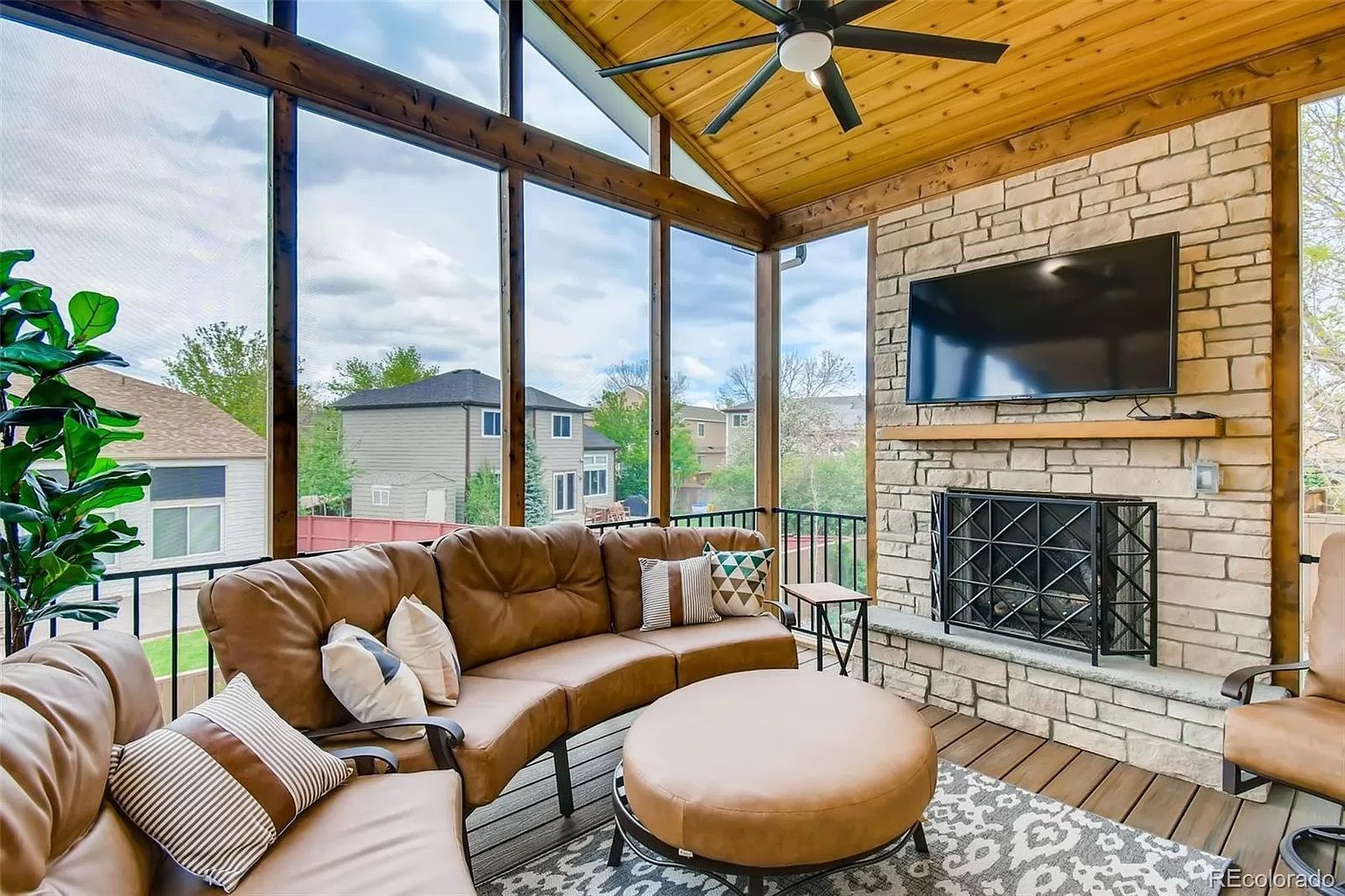 Enjoy the outdoors in comfort with a custom-designed screened porch, offering year-round protection and style.